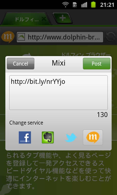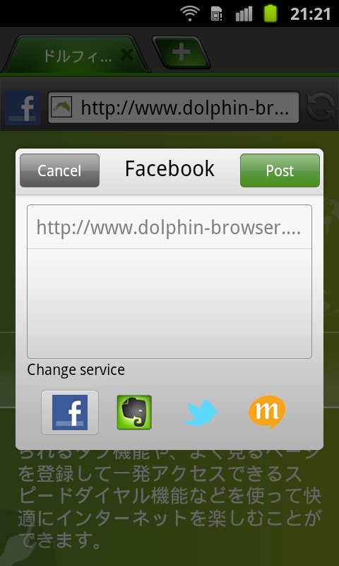 同時,海豚瀏覽器還專門為軟銀的003SH,005SH,006SH,007SH,007SHJ和009SH手機用戶定制了 Facebook,Twitter,Mixi以及Evernote插件。海豚瀏覽器有超過50款插件擴展,用戶可以根據(jù)自己的需求選擇下載并安裝,方便快 捷的啟動設定功能。