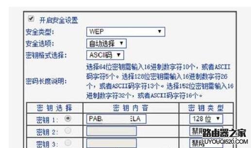 在為無線網絡設置訪問密碼時,注意“安全類型”的選項。其中有WEP、WPA/WPA2、WPA-PSK/WPA2-PSK等多種類型可選。其中WEP使用802.11基本的WEP安全模式,而WPA/WPA2則是Radius服務器進行身份驗證并得到密鑰的WPA或WPA2模式,WPA-PSK/WPA2-PSK則是基于共享密鑰的WPA模式。WEP模式中又有“自動選擇”、“開放系統”、“共享密鑰”等三種選項可供選擇。其中“自動選擇”是根據主機請求自動選擇使用WPA還是WPA2的安全模式。而在密鑰格式設置方面,還可以從ASCII碼或16進制數形式兩種方式來設置WEP密鑰。而選擇不同密鑰格式所對應的密碼長度也有所不同:選擇64位密鑰,需輸入16進制數字符10個,或者ASCII碼字符5個;選擇128位密鑰,需要輸入16進制數字符26個,或者ASCII碼字符13個;選擇152位密鑰需要輸入16進制數字符32個,或者ASCII碼字符16個。
