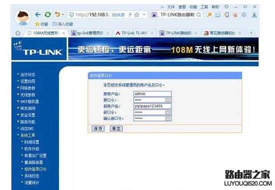 要重新修改路由器管理員賬戶和密碼,在路由器管理設置窗口中點擊“系統工具→修改登錄口令”,然后在右側的窗格中輸入原先的默認用戶名admin和密碼admin,然后設定新的用戶名和密碼,最后點擊“保存”按鈕,將新設的用戶名和密碼寫入路由器的記憶裝置中,重啟路由器即可。