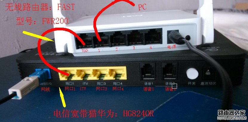 如果一切正常,就該開始設置路由器了,連線如下圖所示: