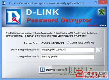 DLink Password Decryptor是一款免費工具,可以直接恢復D-Link路由器/調制解調器的登錄密碼。 如果你丟失了D-link的登錄密碼而你又有備份配置,那么你可以通過這款工具快速找回密碼。目前已測試的D-link modem包括最新的型號DSL-2750U,支持所有Windows平臺。