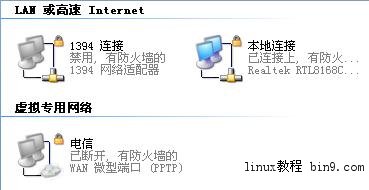 右鍵單擊桌面上的“網上鄰居”→“屬性”進入“網絡連接”,如下圖所示:
