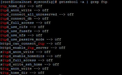 通過 getsebool -a | grep ftp我們可以看到selinux是禁止了所有的ftp服務(wù),為了能正常使用我們需要將