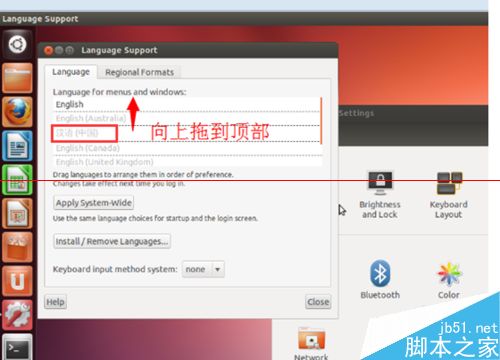 5、將漢語(yǔ)(中國(guó))拉到頂部后,我們點(diǎn)擊“Apply System-Wide”,將漢語(yǔ)(中國(guó))應(yīng)用到整個(gè)系統(tǒng)。
