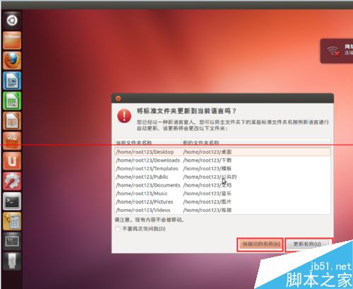 7、在重啟之后,我們會(huì)看到,有一個(gè)詢(xún)問(wèn)的對(duì)話(huà)框,問(wèn)你是否將標(biāo)準(zhǔn)文件夾更新到當(dāng)前語(yǔ)言,這里按照個(gè)人喜好而定”。我們這里也已經(jīng)看到,系統(tǒng)語(yǔ)言已經(jīng)由English修改為了漢語(yǔ)。至此,完成了系統(tǒng)語(yǔ)言的更換