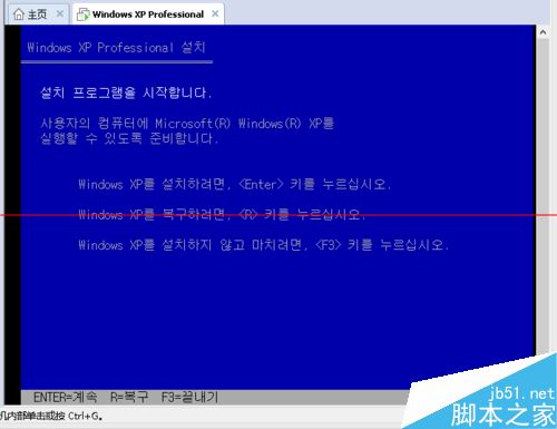 2、加載iso后重啟虛擬機就可以進入安裝界面,我這里用的是安裝版本的iso,安裝過中文版本的朋友都知道只是語言變成的韓文,具體安裝方法和中文版的是一樣的,當然如果你用ghost版本的韓文系統的話和用中文版ghost安裝方法是一樣的具體教程也可以百度。