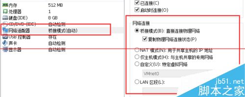 4、至于怎么上網和中文版系統是一樣的,主機用路由的話虛擬機用橋接主機拔號的話虛擬機用nat,我這里用的是路由所以上網方式選擇的是橋接