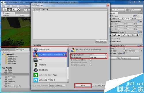 2、文件導(dǎo)出為32位或者64位的,根據(jù)自己的ubuntu的版本決定。點(diǎn)擊左邊的“PC,Mac&Linux...”,右邊的target platforn選擇linux,architecture選擇x86_64(因?yàn)槲业膗buntu是64位的),完成后點(diǎn)擊下面的“build”。