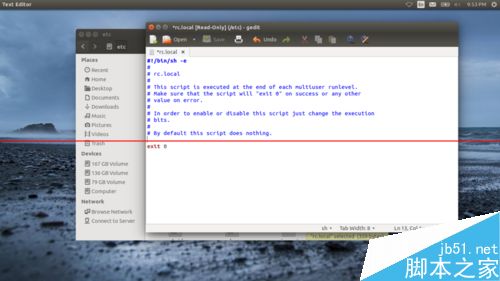 5、打開終端,輸入以下內容:sudo gedit /etc/rc.local