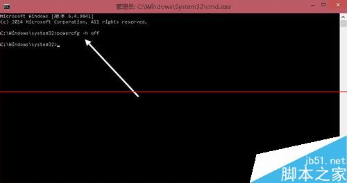 4、命令窗口中輸入 powercfg -h off,即可關閉休眠功能,同時 Hiberfil.sys 文件也會自動刪除。
