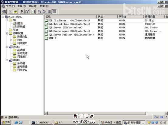 25. 在群集管理器的組0 中可看到SQLServer 的群集服務信息