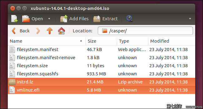 找到內(nèi)核文件和initrd映像。如果你正在使用Ubuntu ISO文件,你會(huì)在casper文件夾中找到這些文件——vmlinuz文件是Linux內(nèi)核,而initrd文件是initrd映像。后面,你需要知道它們?cè)贗SO文件中所處的位置。
