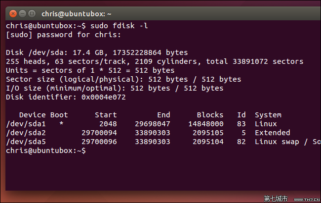 你可以使用fdisk -l命令來(lái)查看該信息。在Ubuntu上,打開(kāi)終端并運(yùn)行以下命令:
