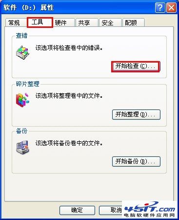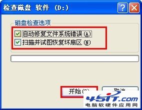 通常這個(gè)提示是由于系統(tǒng)檢測(cè)到硬盤錯(cuò)誤而啟動(dòng)硬盤自檢程序的信息。產(chǎn)生這個(gè)問題多數(shù)是由于非正常斷電等因素,造成硬盤的磁頭沒有時(shí)間執(zhí)行關(guān)機(jī)程序并歸位造成的。大家首先可以重新驅(qū)動(dòng)下電腦,看看能否解決,如果依舊還有這個(gè)提示,則那么需要檢查對(duì)應(yīng)磁盤中的錯(cuò)誤。如上面提示是D盤有問題,因此可以進(jìn)入“我的電腦”在D盤上右鍵,選擇“屬性”,然后再切換都“工具”選項(xiàng),最后在點(diǎn)擊“開始檢查”并勾選“自動(dòng)修復(fù)文件系統(tǒng)錯(cuò)誤”然后開始檢查即可,一般都可以解決問題,如下圖: