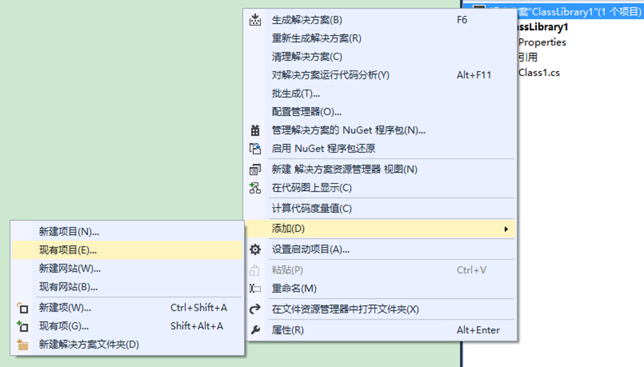 右鍵單擊Solution Explorer,選擇添加->現有項目,瀏覽到AutoCAD的啟動文件Acad.exe