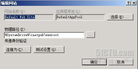 在【IIS管理器】中,點(diǎn)擊默認(rèn)站點(diǎn)右側(cè)【操作】窗口中的“基本設(shè)置”,可以看到默認(rèn)站點(diǎn)的物理路徑為“%SystemDrive%inetpubwwwroot”(%SystemDrive%表示安裝2008R2系統(tǒng)的磁盤分區(qū)),這個路徑對應(yīng)的就是站點(diǎn)的主目錄。