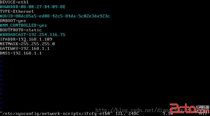 然后是修改 /etc/sysconfig/network-scripts//ifcfg-eth0 這個(gè)網(wǎng)卡的配置文件