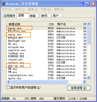 RunHiddenConsole e:/DedeCMS/nginx.exe