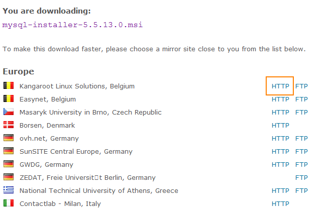 MySQL下載:進入MySQL官網下載網址:http://dev.mysql.com/downloads/mirror.php?id=402887。選擇“No thanks,just take me to the downloads!” (如圖3)。選擇最新鏡像“mysql-installer-5.5.13.0.msi” (如圖4),彈出保存對話框,保存在硬盤目錄下(如圖5)。