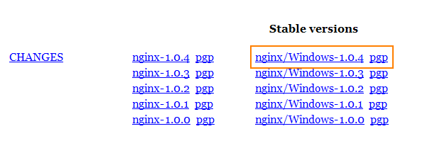 Nginx下載:進入Nginx官網下載網址:http://nginx.org/en/download.html。選擇最新版本 “nginx/Windows-1.0.4 pgp” (如圖6),彈出保存對話框,保存在硬盤目錄下(如圖7)。
