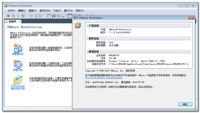 請有使用沐瓏制作的 "VMware Workstation 7.1.0 build-261024 精簡綠色版"的朋友看到了馬上更新一下.