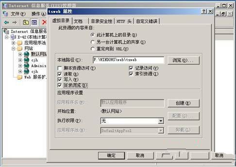 為了確保WebDAV文件夾內的文件安全性,必須對WebDAV虛擬目錄及其所對應的真實文件夾分別設置其安全措施。WebDAV虛擬目錄的權限啟動“IIS管理器”,然后右擊WebDAV虛擬目錄,選擇“屬性”,按圖9所示設置權限,其中的“目錄瀏覽”讓用戶可以看到WebDAV文件夾內的文件。