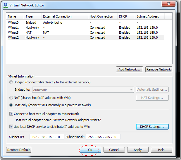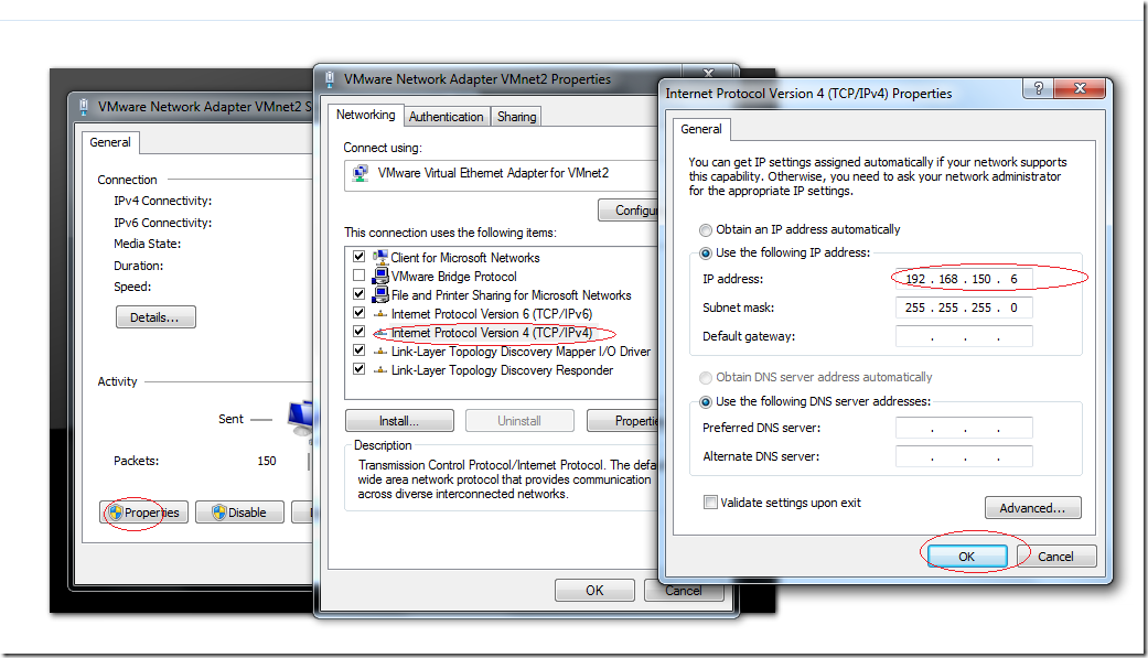 稍后再將虛擬網卡vmnet2的IP設置為:192.168.150.6