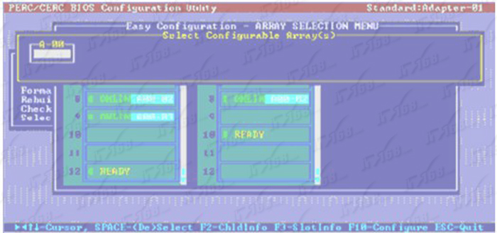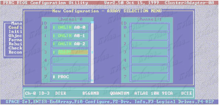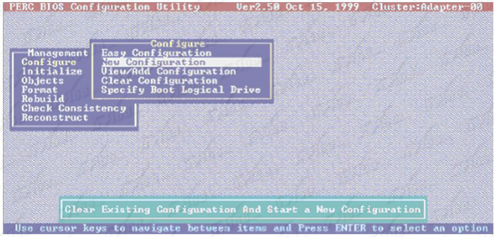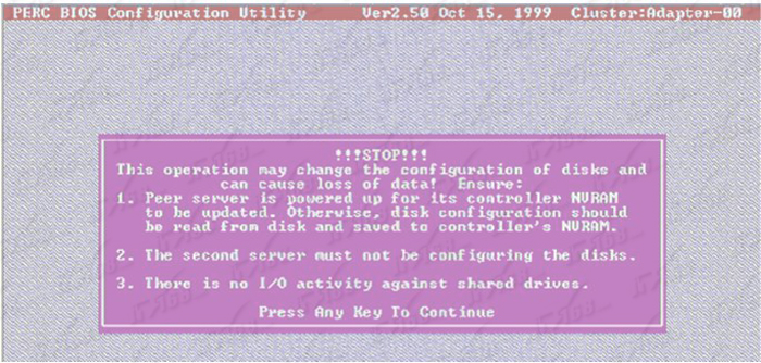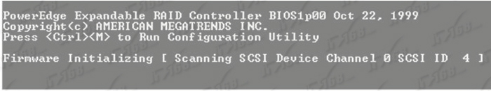 Dell PowerEdge Expandable RAID Controller 3/Di, BIOS V2.7-x [Build xxxx](c) 1998-2002 Adaptec, Inc. All Rights Reserved. <<< Press CTRL+A for Configuration Utility! >>>