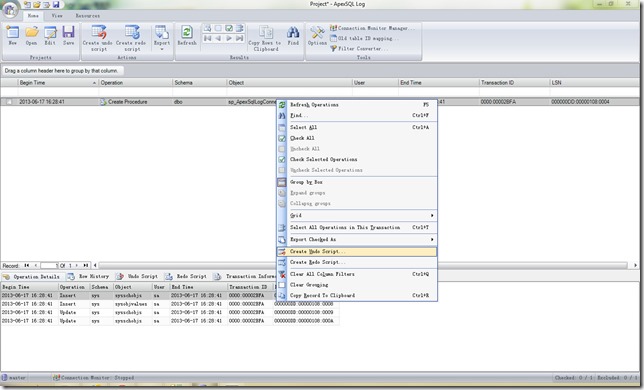 表格列出之前進行的操作,在進行誤操作的行上點擊鼠標右鍵會出現很多菜單,“Create Undo Script”就是創建一個恢復腳本: