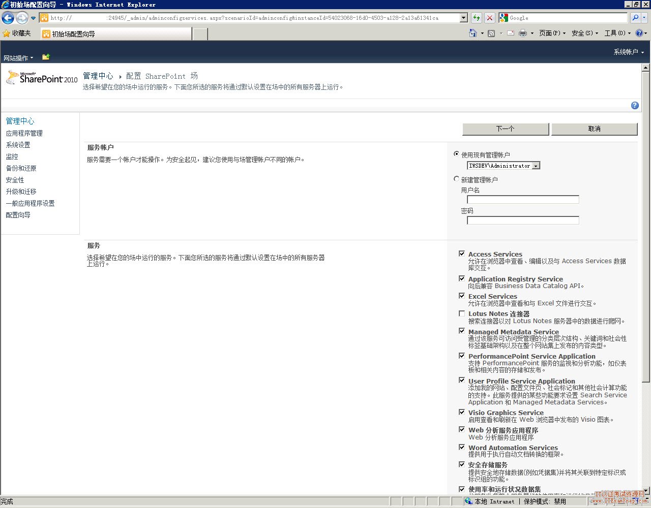 比起SharePoint2007來說,配置簡單了不少,不用再一步步的配置了: