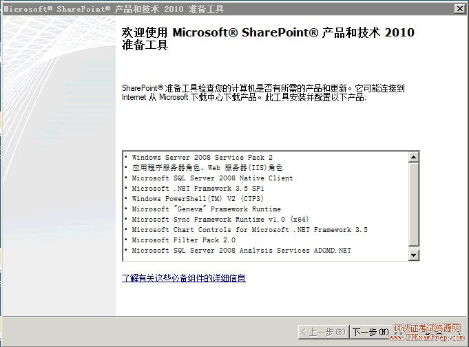 首先安裝系統必備軟件,如果機器可以連接互聯網,將會自動下載這些軟件,不能連接互聯網就只能自己手工下載了,具體需要下載的軟件,請參考如下連接:SharePoint 2010安裝必備組件下載鏈接