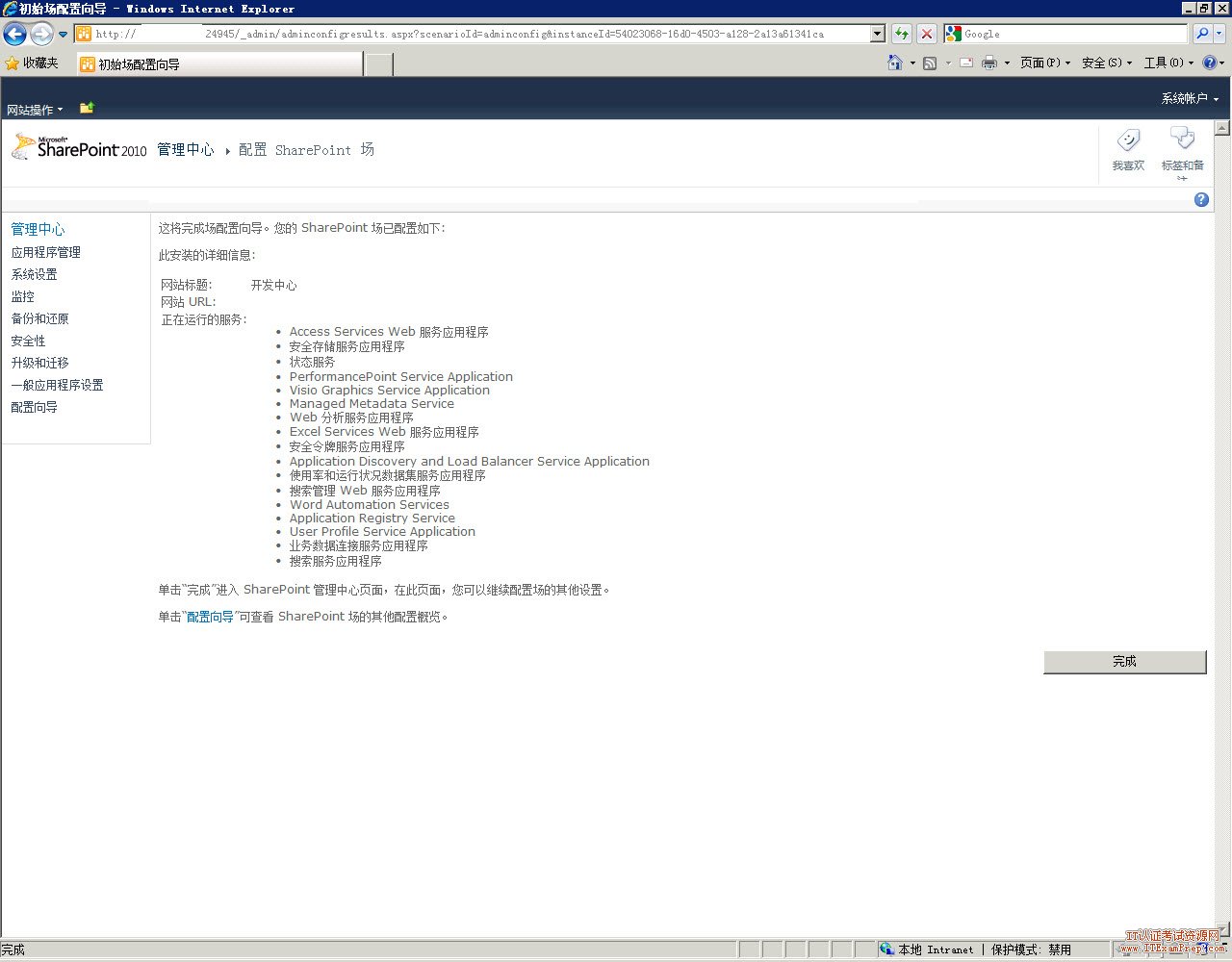 配置完成后,會啟動管理中心,開始服務器場的配置,這個比SharePoint2007智能一點: