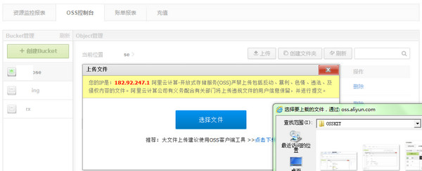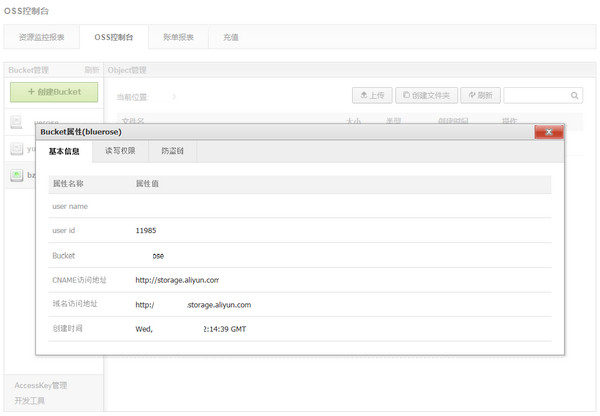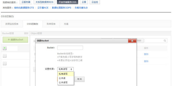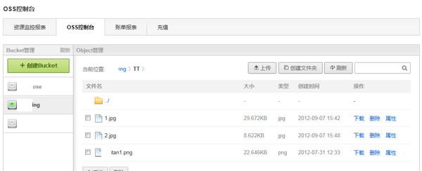 OSS控制臺分為BUCKET管理、與Object管理兩大模塊。