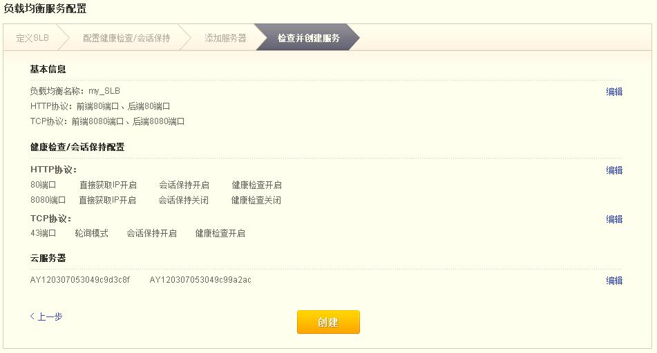 1、檢查您針對該SLB實例配置的各項設置,您可以點擊“編輯”鏈接對相應的設置進行變更和調整;