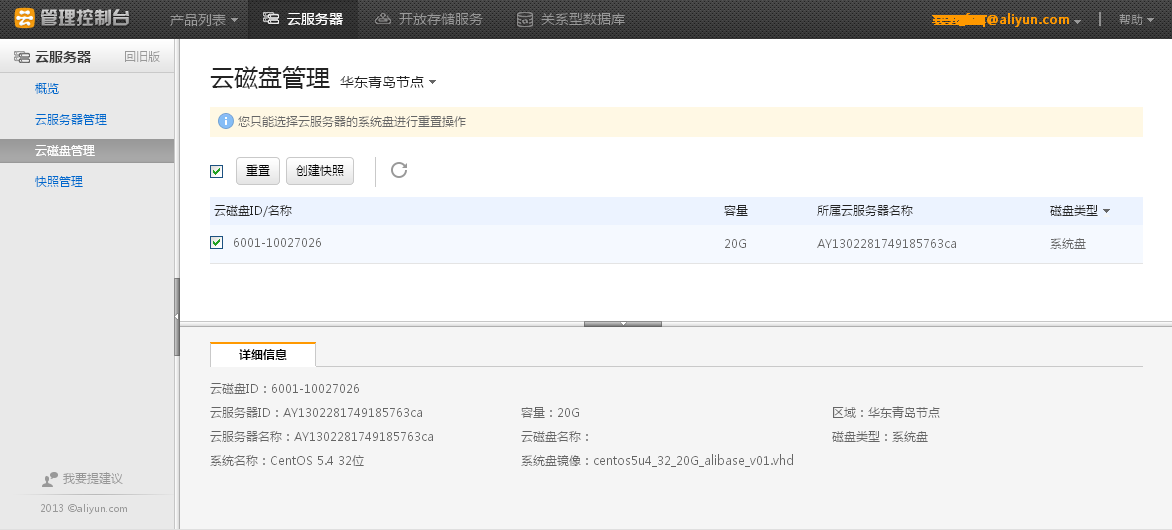 界面中展示的就是所選云服務(wù)器的所有云磁盤(pán)。