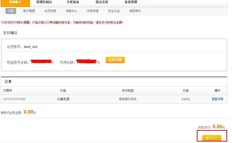 6.訂單確認支付,支付成功等待即可,云服務器會系統自動啟動。