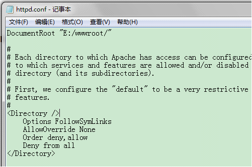 在Apache中,沒有Windows 下IIS的圖形管理界面,我們需要手工修改下apache的配置文件,來進行目錄腳本的執行權限的設定。