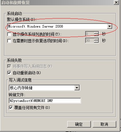 解決辦法:重啟時,按F8,選擇進入windows server 2008,然后選擇“計算機”-->“屬性”-->“高級系統設置”-->選擇“啟動和故障恢復”-->選擇里面的默認操作系統為“windows server2008”,順便把”顯示操作系統列表時間“給勾掉。