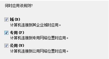 下一界面上保持域、專用、公用為選中。然后下一步。