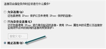 在下一界面上選擇阻止連接,意思是不允許向這個遠(yuǎn)程的端口發(fā)送數(shù)據(jù),也就是把這個端口關(guān)閉封掉了。