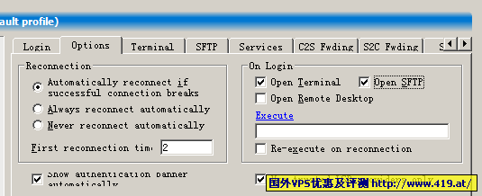 二、Options下面 On Login 里,是登陸后,打開的程序。默認(rèn)是SSH和SFTP,如果你不需要SFTP可以取消掉,然后,點擊最下面的Login登陸: