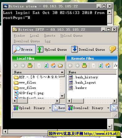 SFTP窗口的我就不進(jìn)行詳細(xì)介紹了,和平時用的FTP軟件是一樣的,可以上傳或下載本機(jī)的文件,這個挺實用的,注意,在不明白哪個文件實際用處前,不要隨意刪除文件,否則可能會導(dǎo)致VPS出錯。
