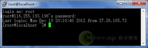 對于沒接觸過遠程操作VPS的用戶來說,在這之前你得確定你已經知道如何遠程連接訪問到Linux系統,如果你的電腦是Windwos系統,一個很好的方法就是使用putty工具。然后就如下圖所示訪問到VPS上去: