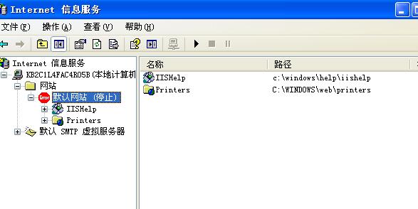 第二步,打開“Internet信息服務”,然后進入“網站”,會看的上圖所示的結果,如果你的網站是處于運行狀態的,你會在“默認網站”后面看到“運行”的字樣,而我這里是“停止”,但是這個不影響。