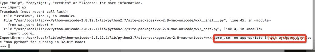 在 wxpython 官網下載了 安裝文件,wxPython2.8-osx-unicode-2.8.12.1-universal-py2.7.dmg , 安裝時提示錯誤