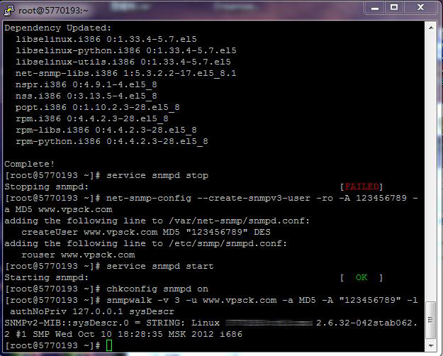 net-snmp-config --create-snmpv3-user -ro -A 123456789 -a MD5 vpsck
