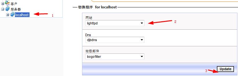 最后一點就是 kloxo 支持切換 web 服務器程序,默認情況是使用的 lighttpd 程序 特點是占用內存小,缺點是非主流網站程序
