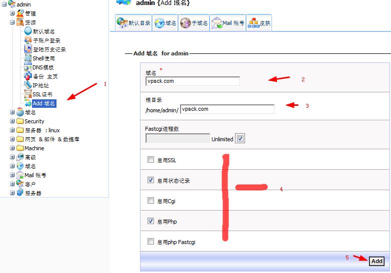添加域名以及網站所在路徑,第圖片 4 處根據自己站點需要選擇 一般安圖片所示就可以了 日志如果不要不勾選就行了.