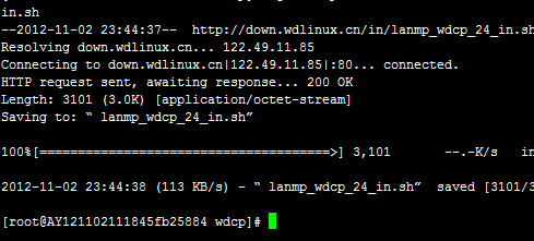 接下來,我們運行遠程下載命令 wget http://down.wdlinux.cn/in/lanmp_wdcp_24_in.sh 下載wdcp程序的RPM安裝包,該安裝包方便,快速,5分鐘就可安裝完。