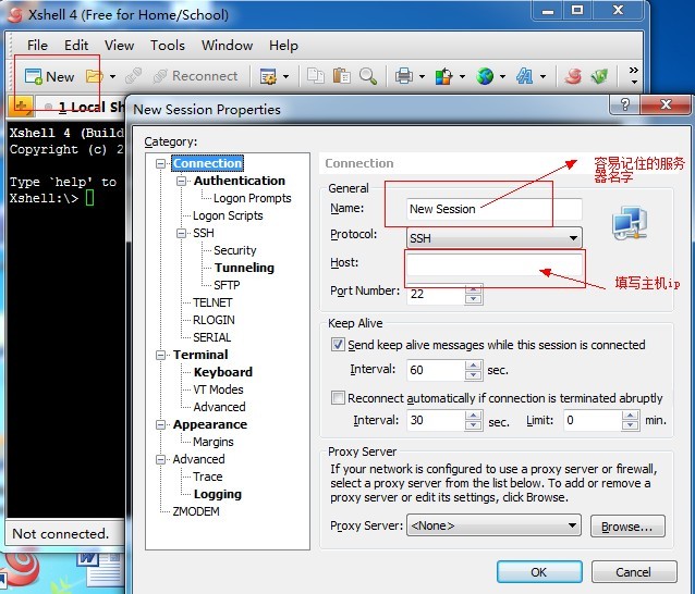 安裝完畢后打開xshell